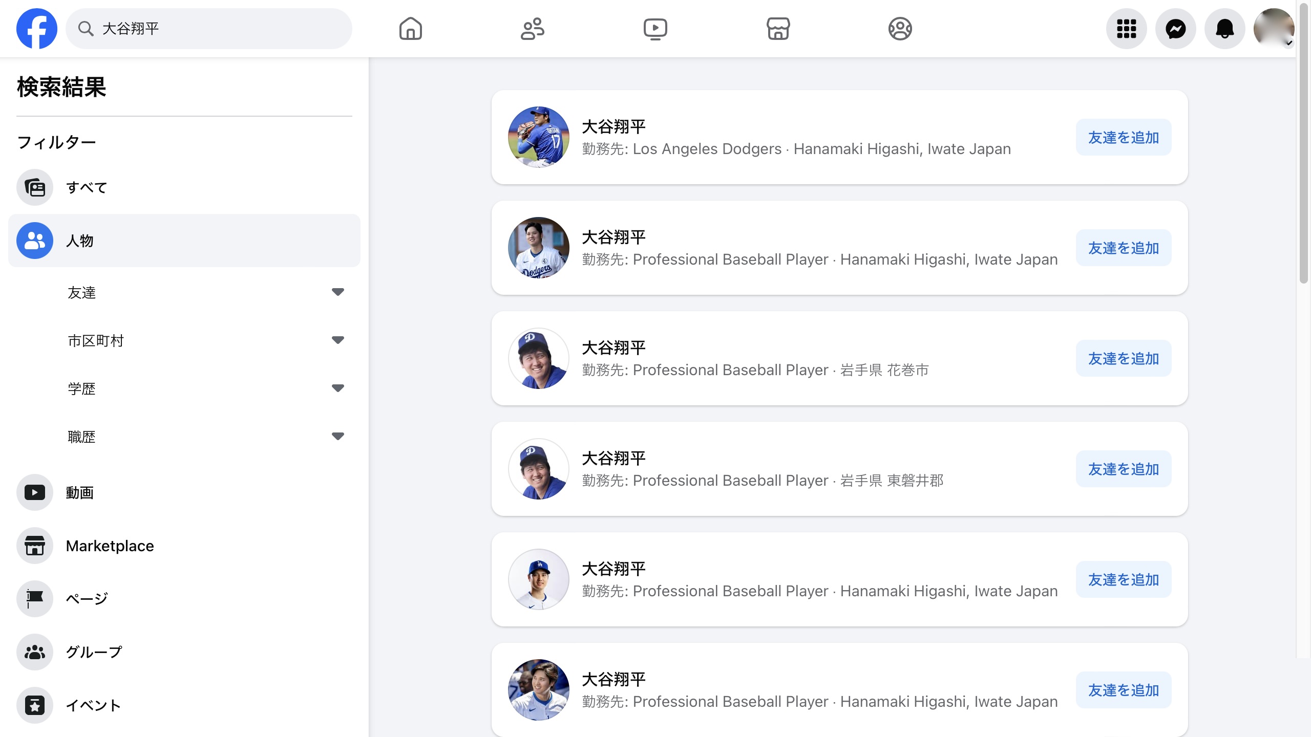 SNS上に蔓延するフェイク情報。AIで制作した詐欺CMや、偽アカウントが多数存在します。例えばfacebookで”大谷翔平”を検索すると、500人以上が表示され、多くの方々の勤務先はロサンゼルスドジャースの野球選手とのこと(2025/9/17 21:51現在)。偽アカウントにかかわるとトラブルに巻き込まれる危険性が高いので要注意です。