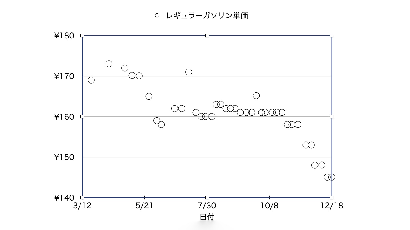 高市政権が発足して僅か2か月なのに、景気回復策(国民の可処分所得増加策を含む)が目白押しです。特にガソリン・軽油暫定税率の廃止は特筆モノ。大蔵省(現在の財務省)が約50年間抵抗してきた暫定法をあっさり廃止。ガソリン(25.1円/ℓ)は今月末に廃止され、軽油(17.1円/リットル)も来年4月1日に廃止されます。しかも政府は景気対策即効性を狙い、元売各社に対する補助金を11月から段階的に上増し。ガソリン・軽油の小売価格は11月中旬から下落開始しました。グラフは実家クルマに給油したレギュラーガソリンの購入単価ですが、9か月前に比べて既に25円/ℓ値下がり。とても助かります。