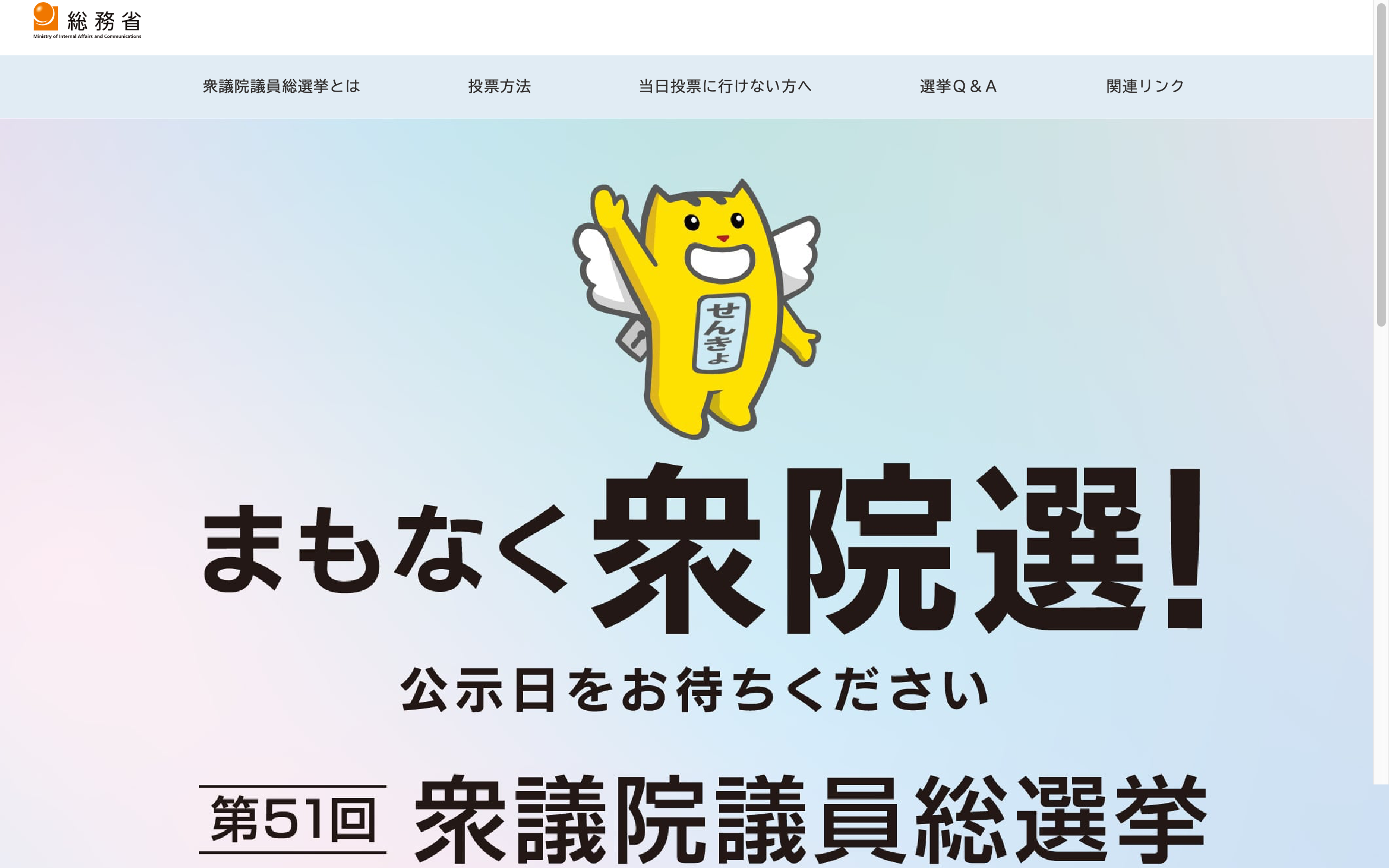 総務省の第51回衆議院議員総選挙の衆院選2026特設サイトです。選挙に関する様々な情報を発信しています。