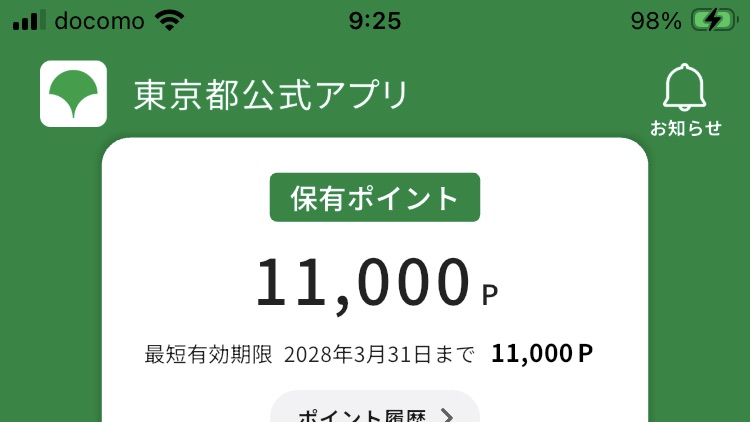 東京都の「東京アプリ生活応援事業」が2月2日から実施。私もポイントをもらいました。